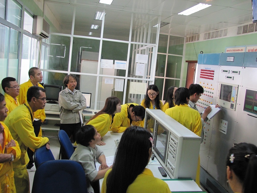 Các học viên đang thực hành tại Phòng điều khiển Lò phản ứng