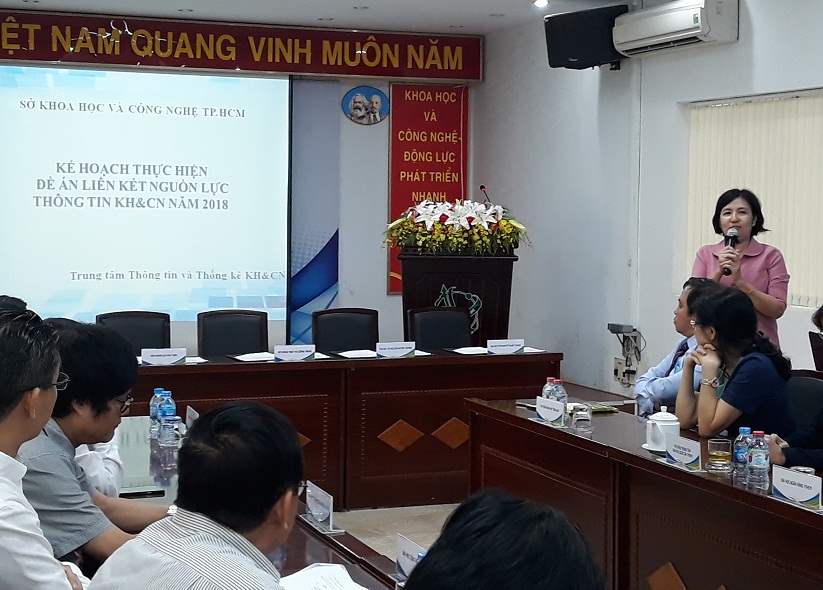 Bà Bùi Thanh Bằng, Giám đốc Trung tâm Thông tin và Thống kê KH&CN TP.HCM giới thiệu kế hoạch triển khai Đề án liên kết nguồn lực thông tin KH&CN.
