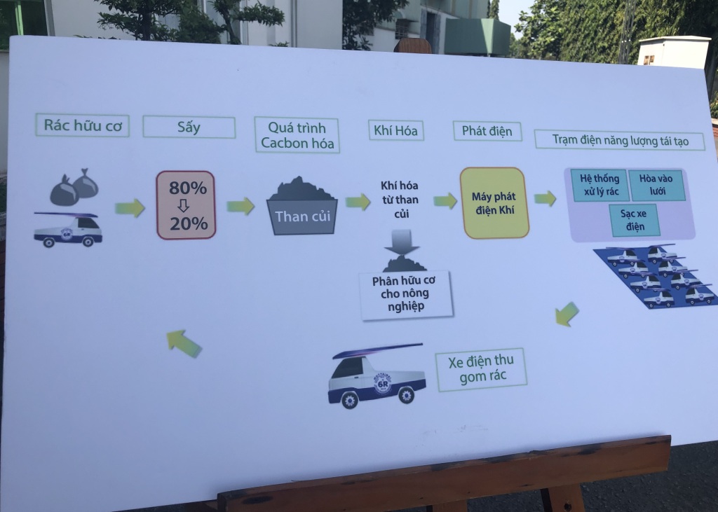 Công nghệ xử lý rác hữu cơ tái tạo năng lượng 6R cho phép giải quyết bài toán xử lý rác hữu cơ để chuyển hóa thành điện năng hoặc nhiệt năng với hiệu suất cao. Công nghệ này gồm hai phần chính là xe điện thu gom rác và hệ thống xử lý rác hữu cơ không phát thải CO2. Trong đó, xe gom rác chạy bằng điện được tạo ra từ chính quá trình xử lý rác mà xe mang về, tạo nên một quy trình khép kín. Ngoài ra, sản phẩm cuối cùng của quá trình xử lý này cũng được ứng dụng làm phân bón hữu cơ.